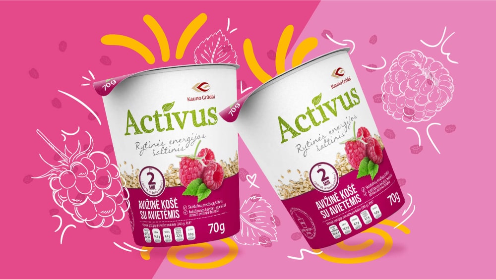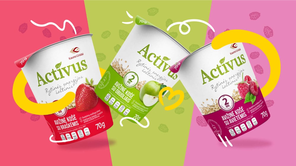 Kauno Grūdai — one of the largest companies in Lithuania with a wide product assortment. Bold Brands was tasked with creating the oatmeal packaging design and logo. The oats were to be supplied in a new type of cup that had not yet existed on the market, so special attention had to be given to the design and an effort made to stylistically differentiate from competitors.