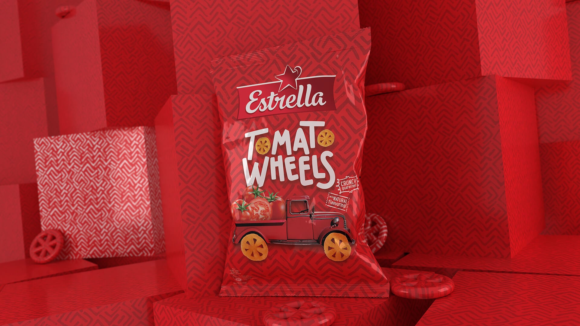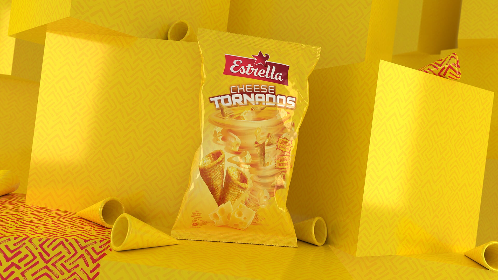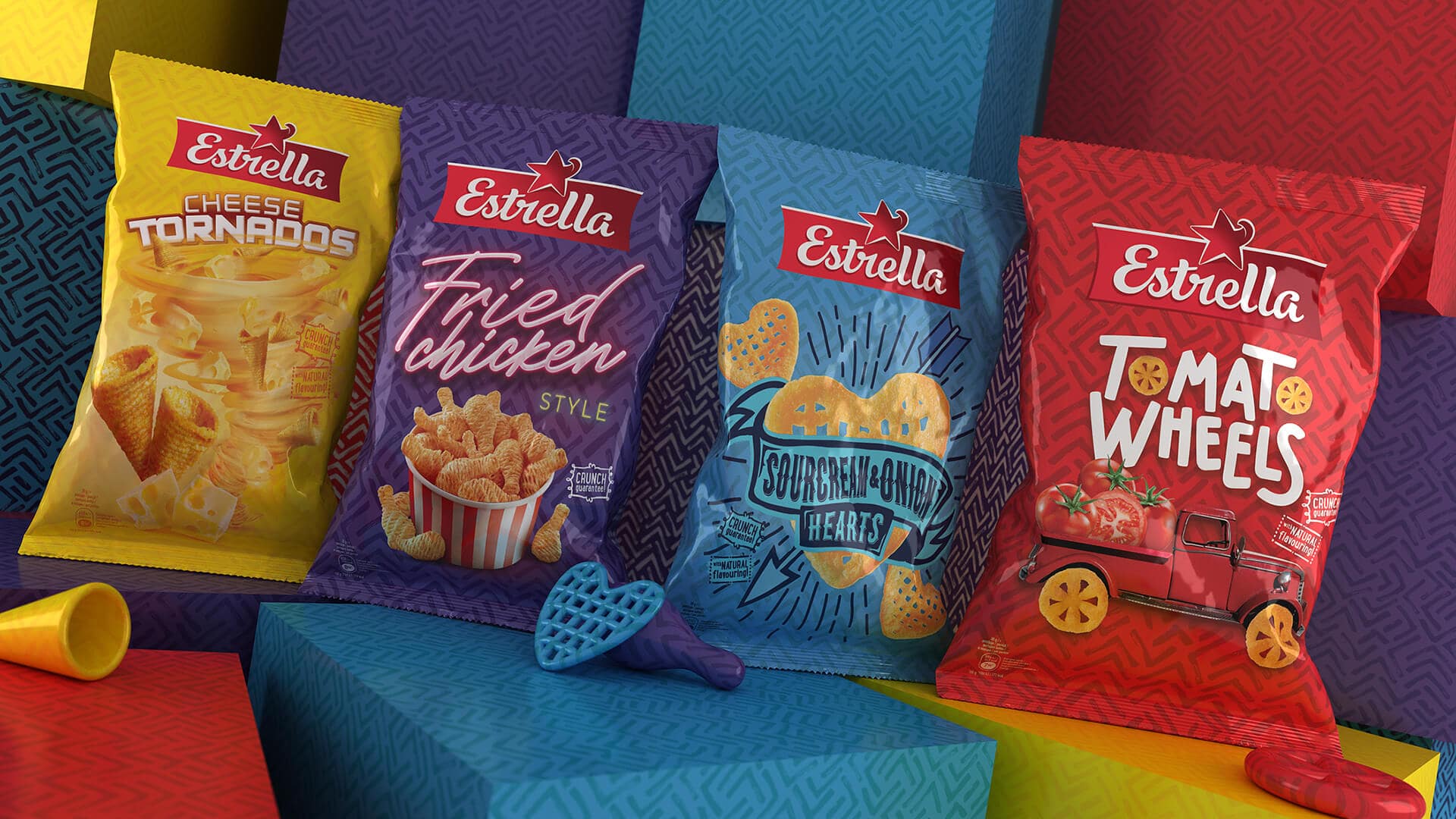 The goal of the new Estrella Shapes snack packaging was to stand out on store shelves and attract a young, playful consumer looking for new product expressions.