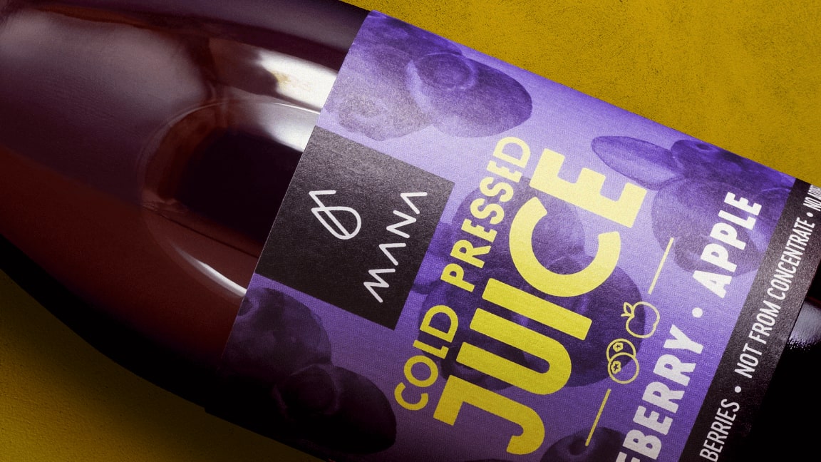 MANA is a well-known organic juice brand that struggled to stand out on retail shelves. The glass bottle dictated a classic, vintage-inspired design direction.
