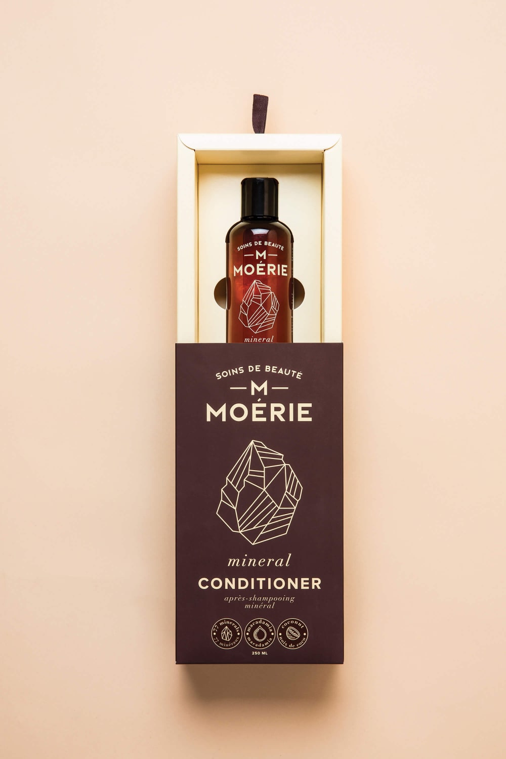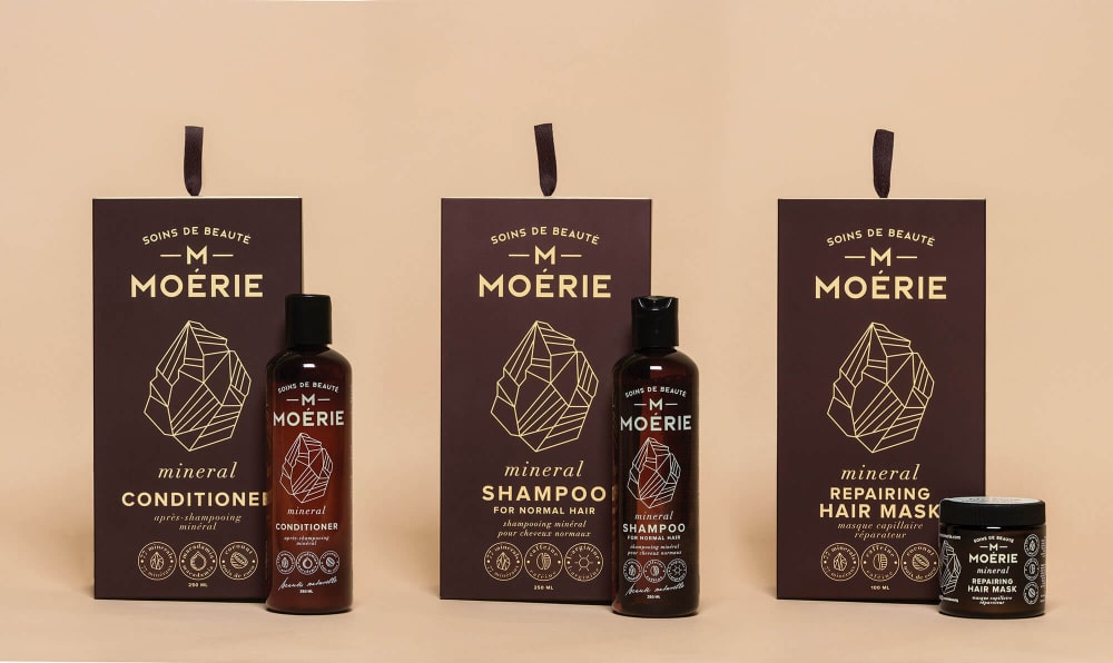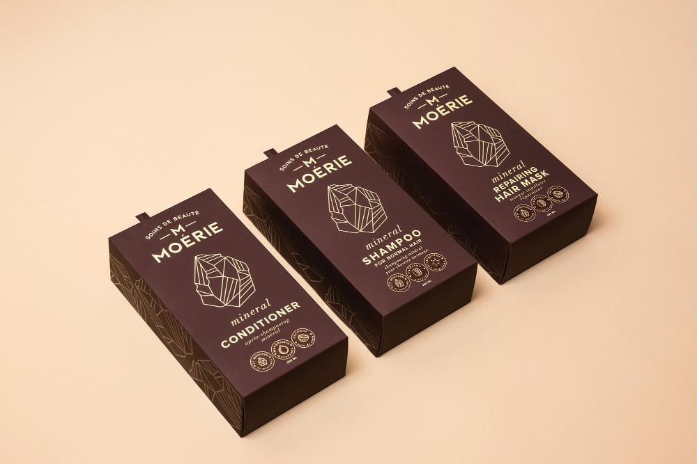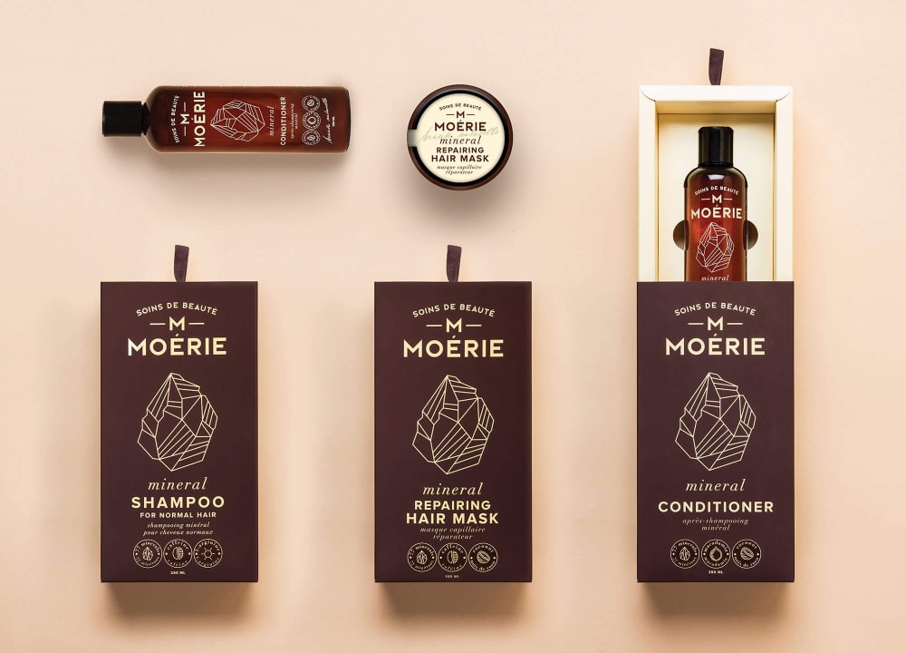 A premium hair care packaging design was created for the Moerie brand. A rich brown color palette and a humanist typeface convey a sense of naturalness and organic quality, emphasizing the high standard of the product’s ingredients.