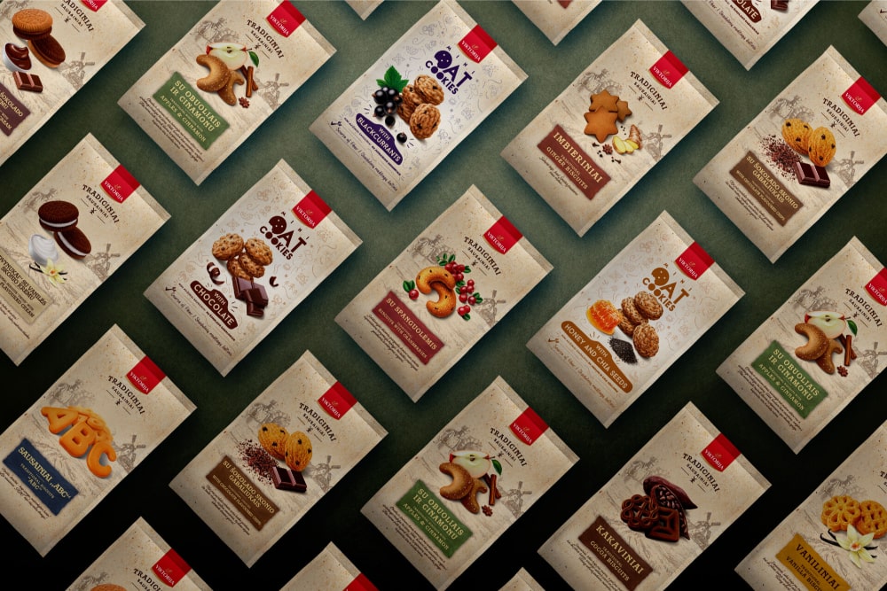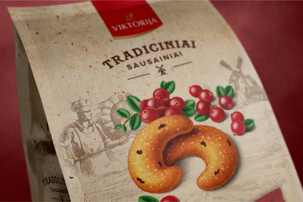 VIKTORIJA, one of the oldest cookie bakeries in Lithuania, operating since 1939, decided in 2018 to refresh its product appearance. Bold Brands was chosen to develop a new name, strategy, and packaging design.