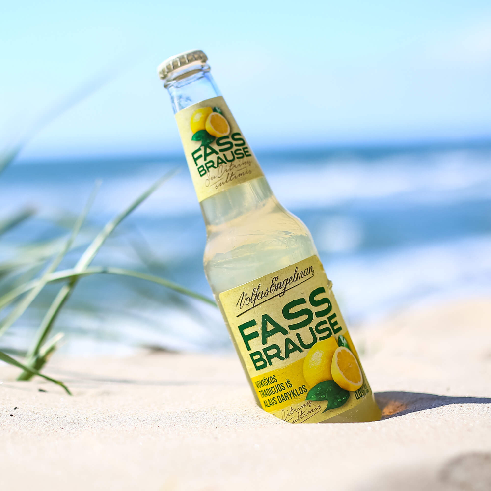 Fass Brause is a traditional German beverage that can be lightly alcoholic or non-alcoholic, made from fruit and malt extract and traditionally aged in barrels. It was created in 1908 in Berlin by chemist Ludwig Scholvien as a non-alcoholic alternative to beer with a similar taste and color. As the non-alcoholic beverage market in Lithuania continued to grow, the client decided to introduce a new carbonated non-alcoholic drink. Our task was to create the product’s label design.